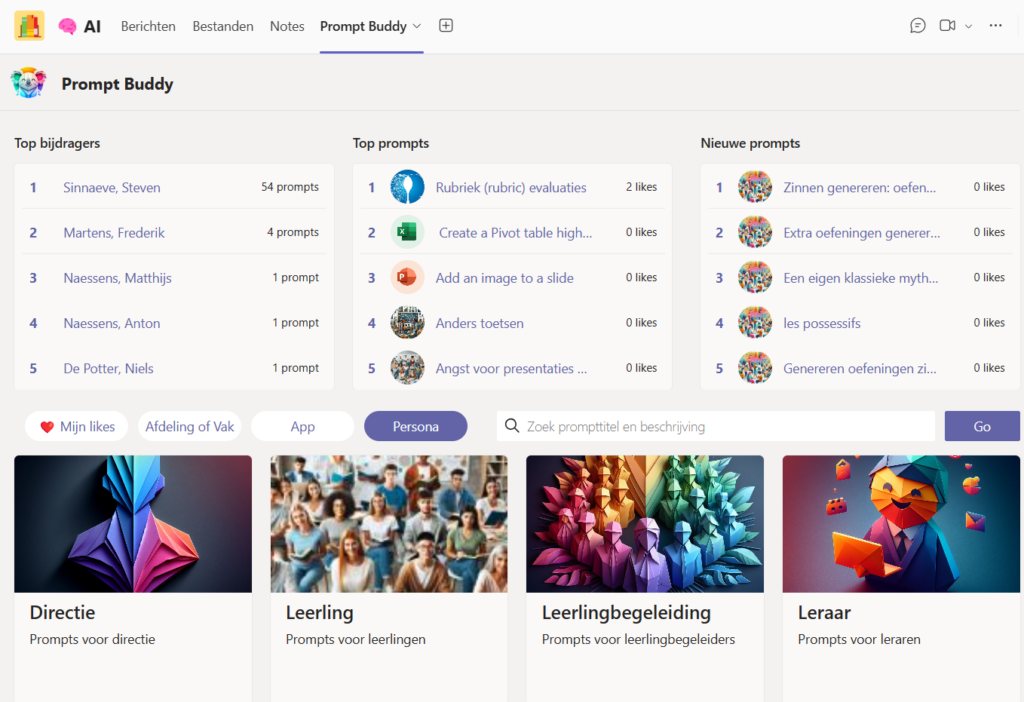 We willen dit beleid ook concreet maken: de Prompt Buddy staat in het kanaal AI van het team A-PT-Digitaal leren en levert instant bruikbare prompts: